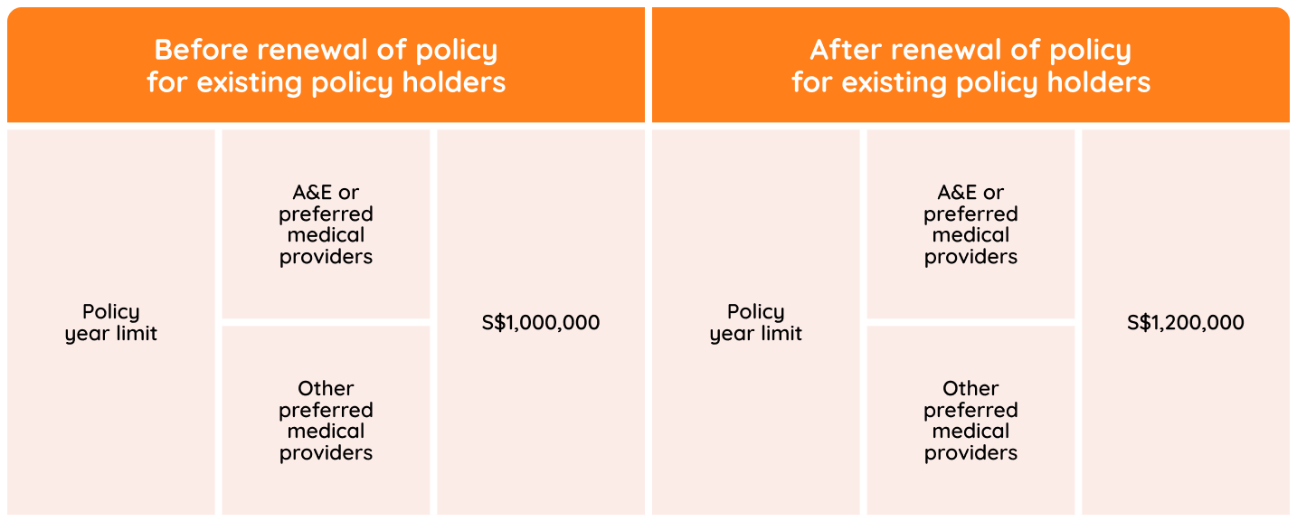 Singlife Shield Plan 2 policy year limit will be increased to S$1,200,000, providing greater coverage differentiation across Singlife Shield plans